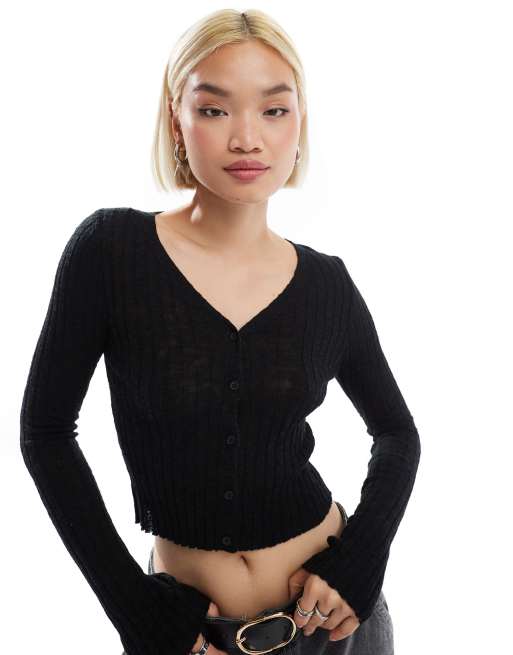 Stradivarius – STR – Czarny kardigan z lekkiej dzianiny