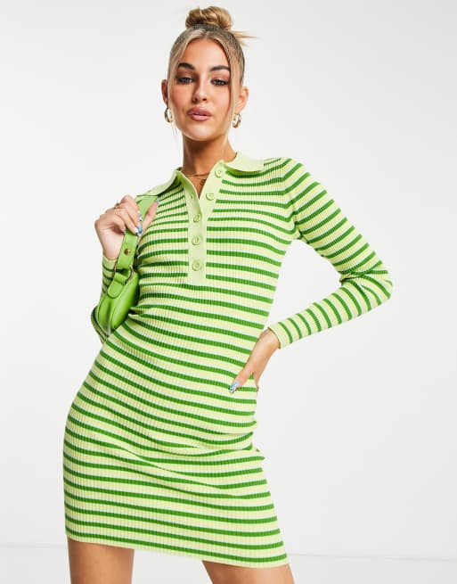 Stradivarius – STR – Zielona sukienka mini w paski z kontrastowym dekoltem i kołnierzykiem polo