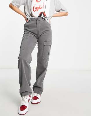 Stradivarius – Szare sprane spodnie bojówki z prostymi nogawkami