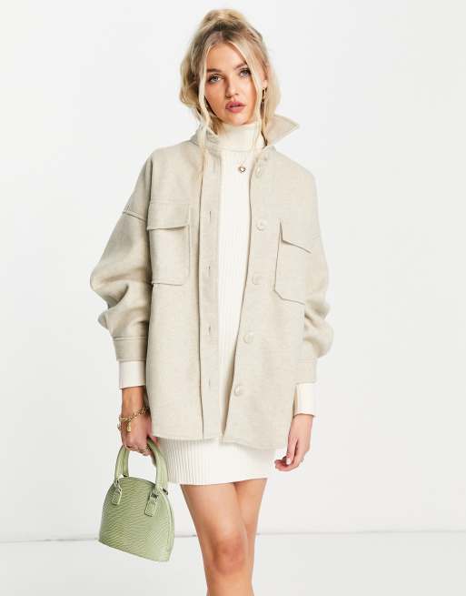 Stradivarius – Szczotkowana koszula wierzchnia w kolorze ecru