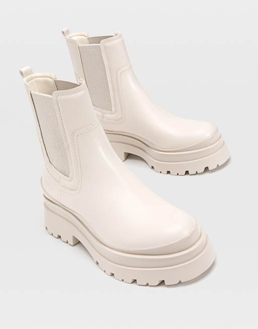 Stradivarius – Sztyblety na grubej podeszwie w kolorze ecru