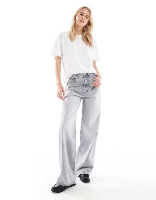 Stradivarius Tall – D88 – Jasnoszare sprane jeansy o bardzo luźnym kroju