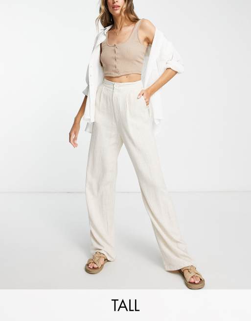 Stradivarius Tall – Lniane spodnie dad fit z szerokimi nogawkami w kolorze naturalnym