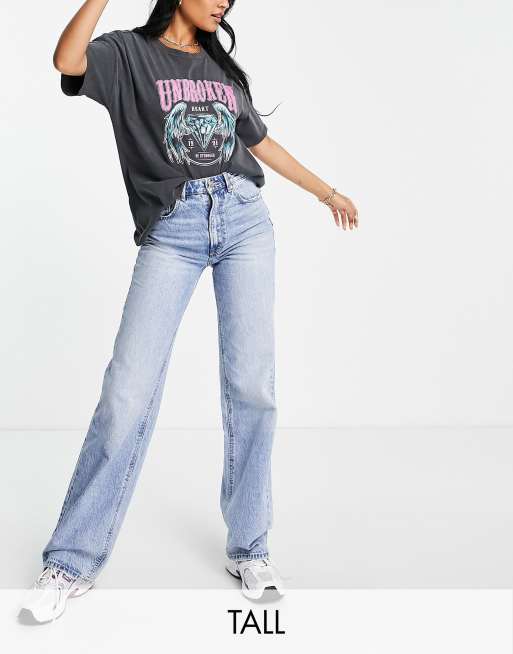 Stradivarius Tall – Niebieskie jeansy typu dad w stylu lat 90.