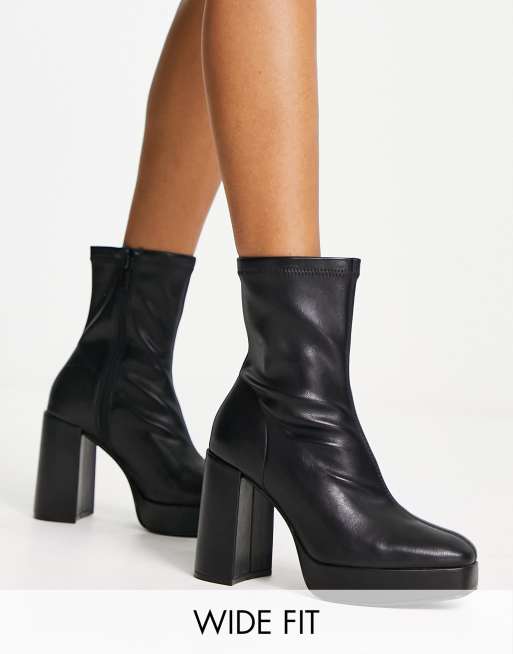 Stradivarius Wide Fit – Czarne buty na obcasie i platformie
