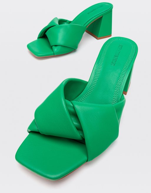 Stradivarius – Zielone klapki ze skrzyżowanymi paskami