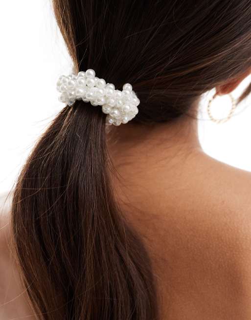 SUI AVA – Klasyczna, kremowa, ślubna gumka do włosów z perełkami