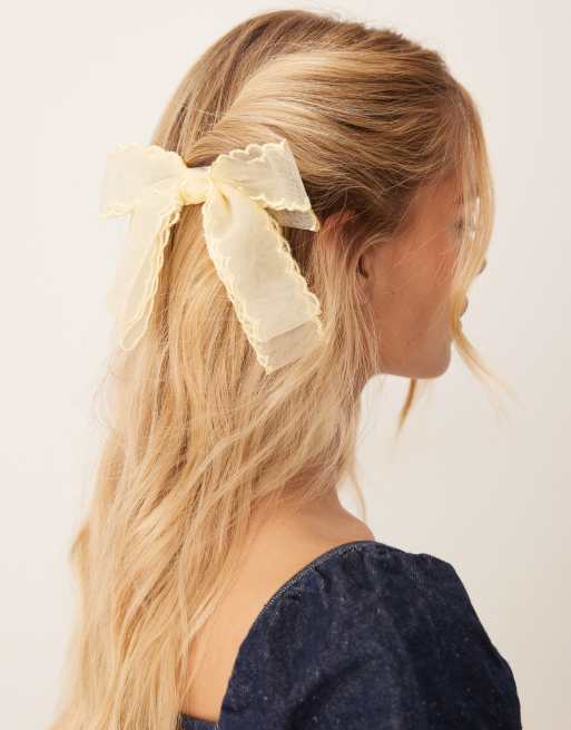 Sui Ava – Żółta podwójna koronkowa kokarda do włosów