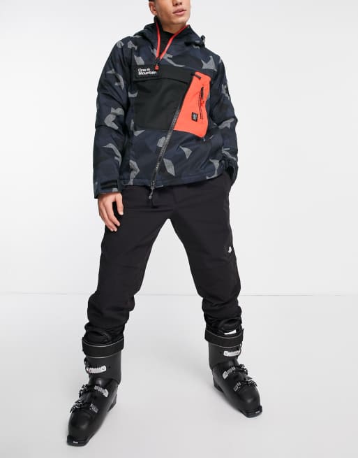 Surfanic – Project X – Czarna kurtka narciarska we wzór moro, zakładana przez głowę