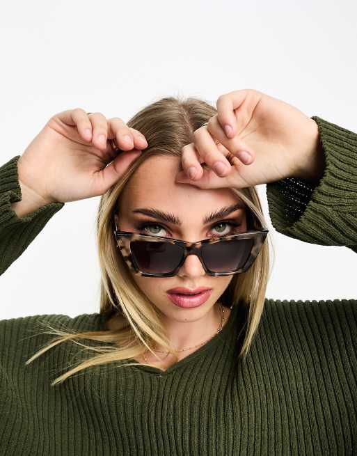 SVNX – Duże okulary przeciwsłoneczne typu kocie oczy w mlecznych szylkretowych oprawkach