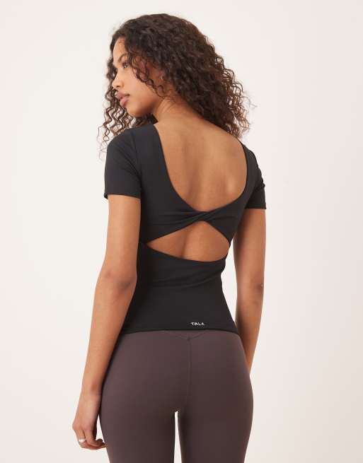 Tala – DayFlex – Czarny długi T-shirt ze skręconą wstawką na plecach i wbudowanym podtrzymaniem