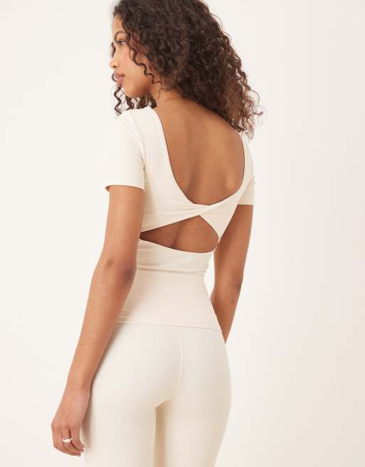 Tala – DayFlex – Maślany długi T-shirt ze skręconą wstawką na plecach i wbudowanym podtrzymaniem