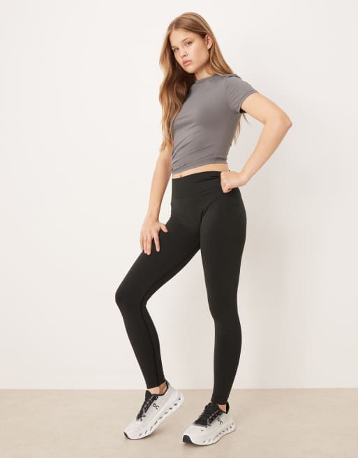 Tala – Modelujące legginsy bezszwowe z marszczeniem w kolorze melanżowej czerni