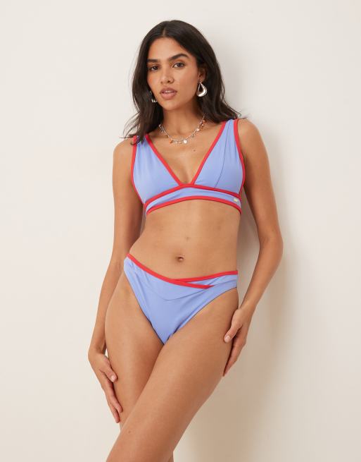 Tala – Niebieska góra od bikini z głębokim dekoltem i kontrastowym zdobieniem