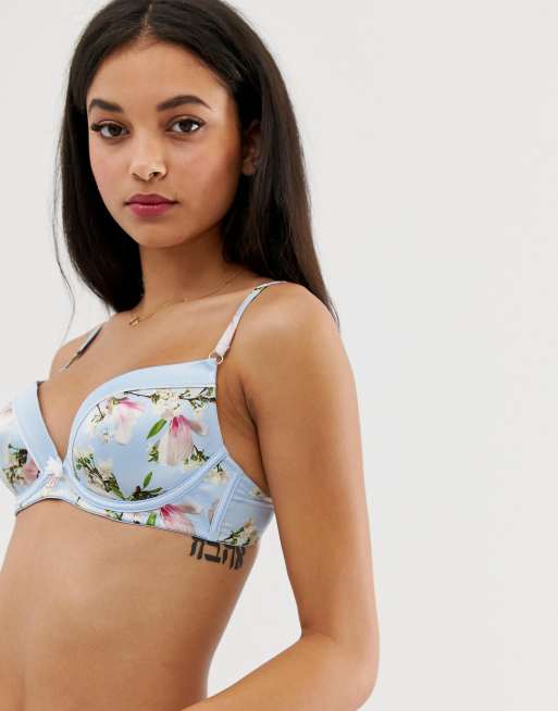 B By Ted Baker Harmony niebieski głęboko wycięty stanik z kwiecistym nadrukiem