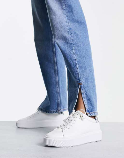 Ted Baker – Filona – Białe skórzane buty sportowe ze wstawkami w kratkę na masywnej podeszwie