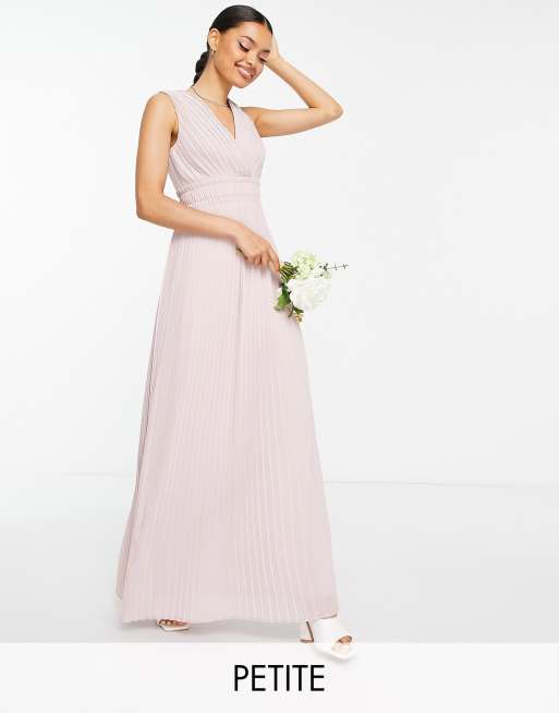 TFNC Petite Bridesmaid – Szaroróżowa plisowana i zbierana w talii sukienka maxi
