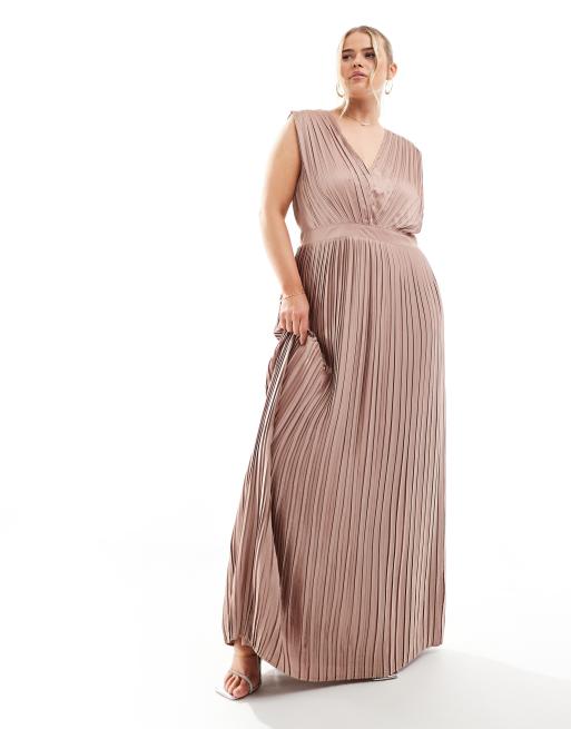 TFNC Bridesmaid – Różowobrązowa plisowana sukienka satynowa maxi