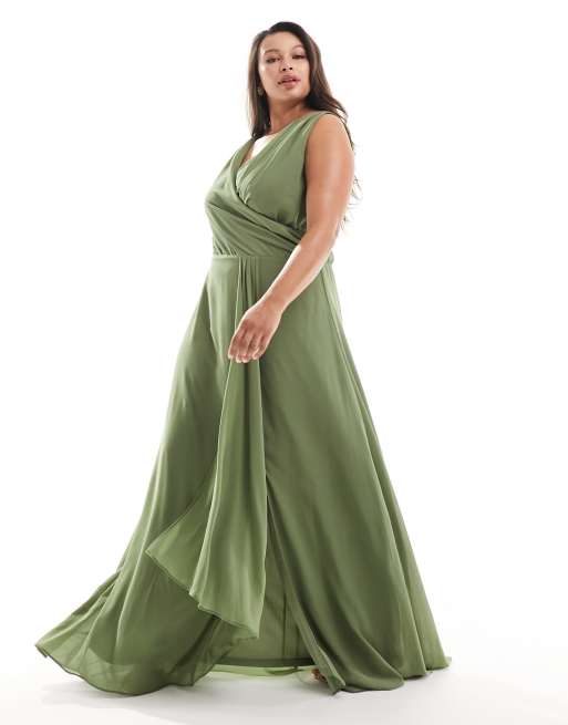 TFNC Plus Bridesmaid – Szałwiowa szyfonowa sukienka maxi z rozcięciem z przodu