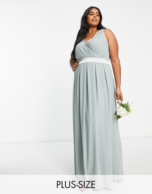 TFNC Plus Bridesmaid – Szałwiowozielona sukienka maxi z kokardą na plecach