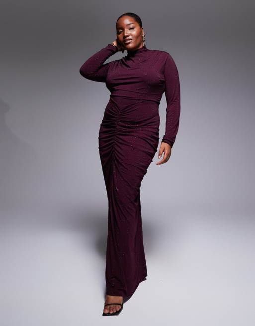 TFNC Plus – Wiśniowa zdobiona sukienka maxi z golfem