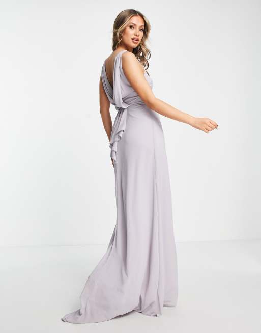 TFNC – Bridesmaid – Szara sukienka maxi z zabudowanym dekoltem i drapowanym tyłem dla druhny