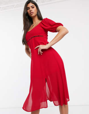 TFNC – Sukienka midi z ozodbną talią i rozcięciami po bokach