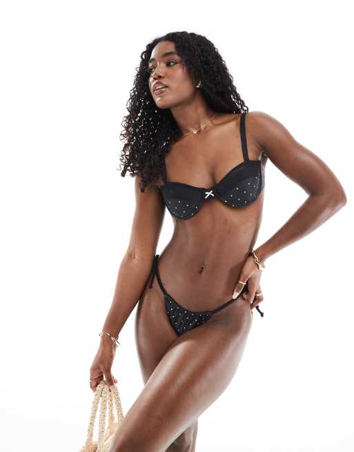 The Frolic Exclusive – Czarny wiązany po bokach dół od bikini w groszki, część zestawu