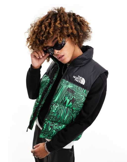 The North Face – 96 Retro Nuptse – Zielony puchowy bezrękawnik ze wzorem