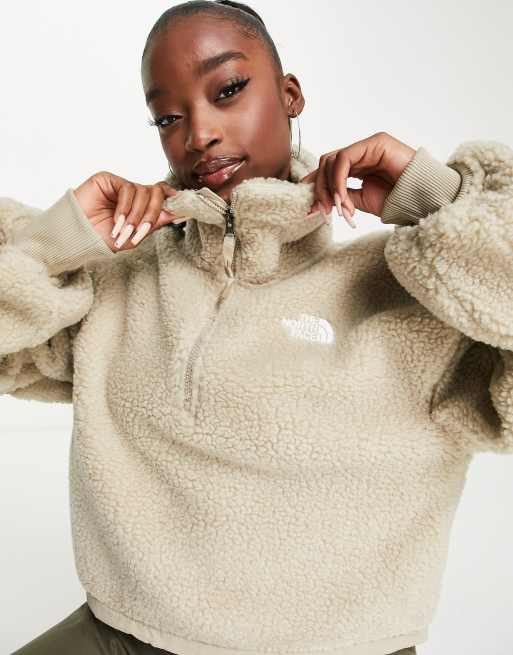 The North Face – Beżowy polar ze sztucznym kożuszkiem i zamkiem 1/4