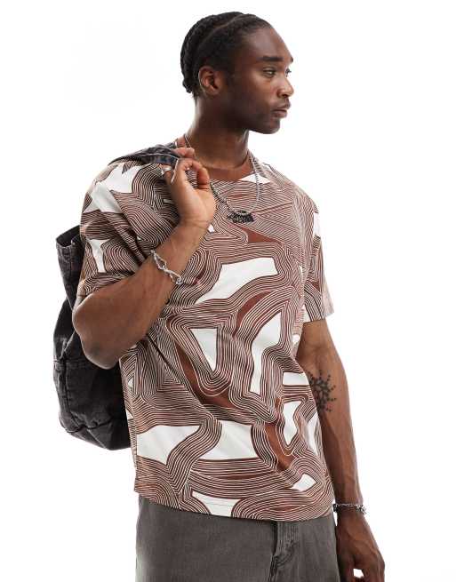 The North Face – Brązowy gruby T-shirt oversize w geometryczny wzór – tylko w ASOS