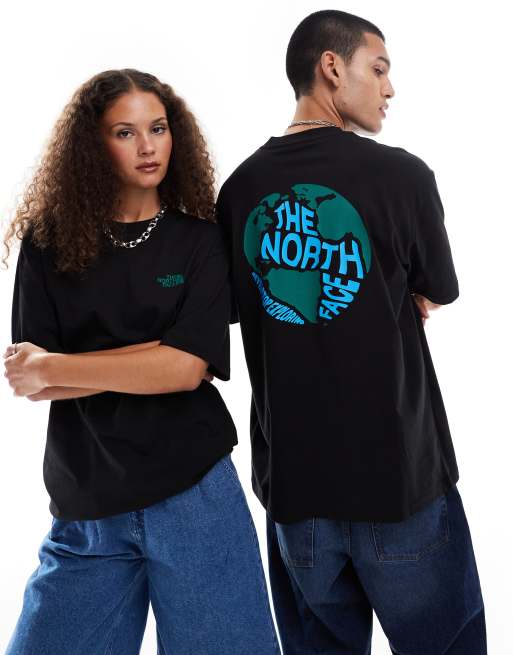 The North Face – Czarny T-shirt oversize z nadrukiem z kulą ziemską na plecach