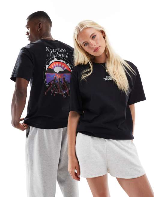 The North Face – Czarny T-shirt unisex z nadrukiem i napisem Never Stop na plecach