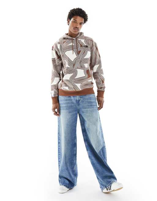 The North Face Essential – Brązowa polarowa bluza z kapturem oversize w geometryczny wzór – Tylko w ASOS