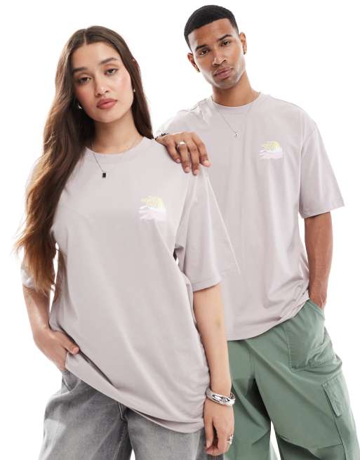 The North Face – Jasnoszary T-shirt oversize z nadrukiem Mountain View na plecach – tylko w ASOS