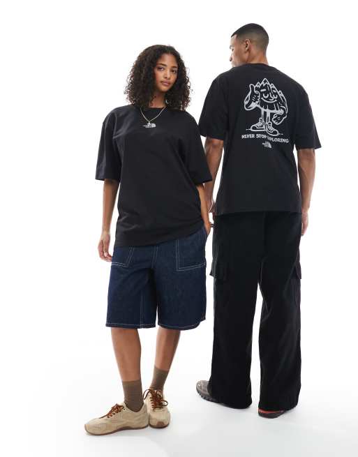 The North Face – Mountain Fun – Czarny T-shirt unisex o fasonie oversize z nadrukiem na plecach
