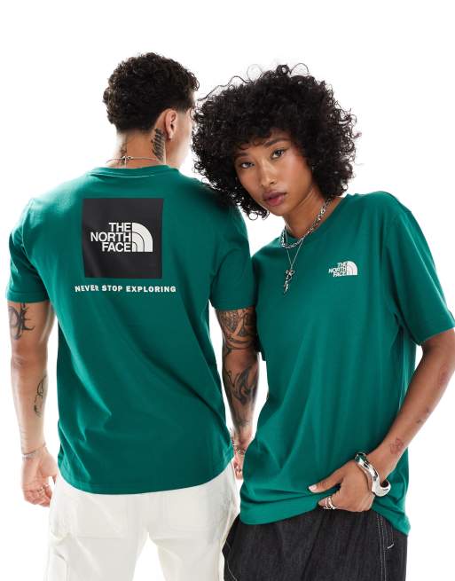 The North Face – Redbox – Ciemnozielony T-shirt z nadrukiem w ramce na plecach