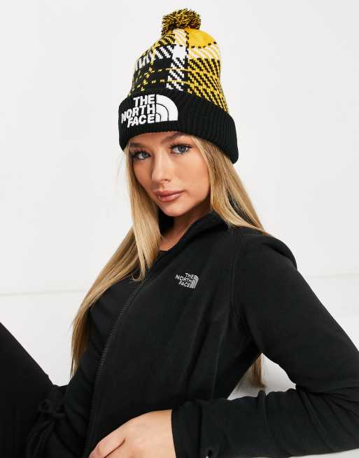The North Face – Żółta czapka beanie w kratę z pomponem w stylu retro