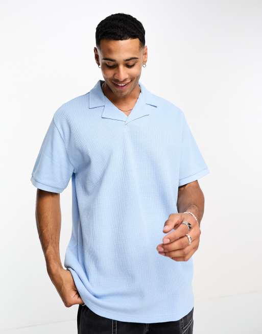 Threadbare – Błękitna koszulka polo z kołnierzykiem kubańskim o waflowej fakturze
