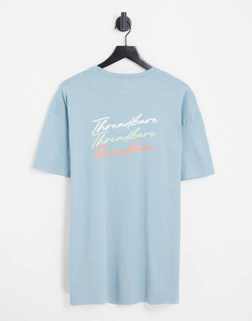 Threadbare – Błękitny T-shirt oversize z logo na plecach