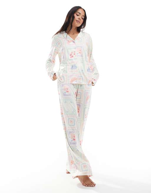 Threadbare – Biała miękka piżama w kafelkowy wzór