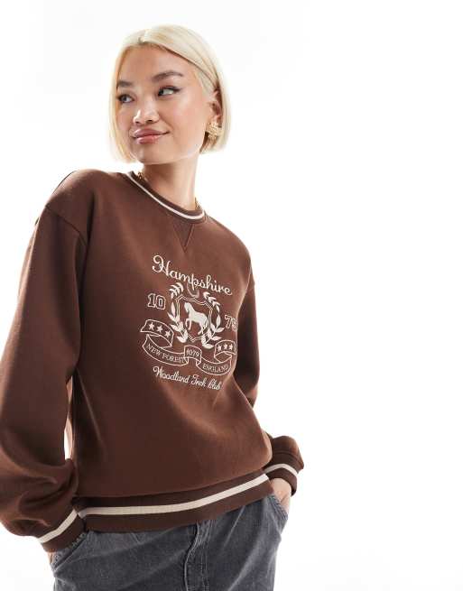 Threadbare – Brązowa bluza z haftowanym wzorem z napisem Hampshire