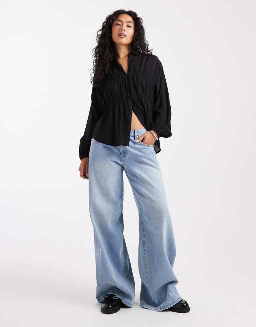 Threadbare – Czarna bluzka z długimi rękawami zapinana na guziki