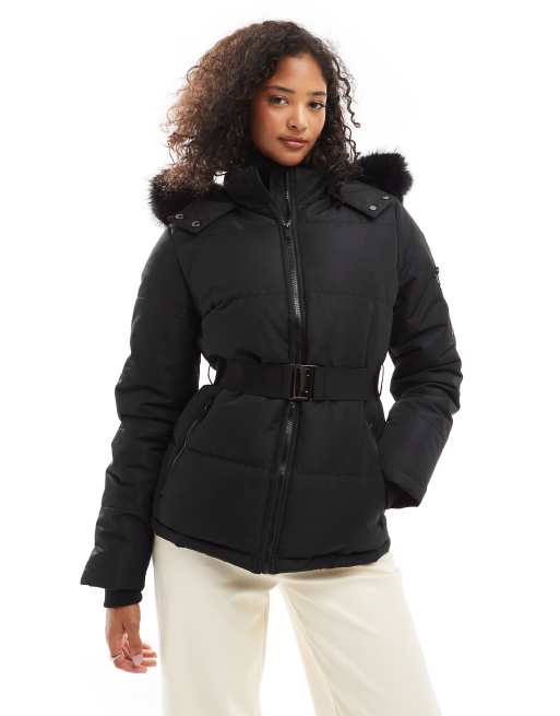Threadbare – Czarna kurtka narciarska z kapturem