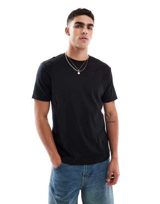 Threadbare – Czarny gruby T-shirt z krótkim rękawem i haftowanym kwiatowym motywem