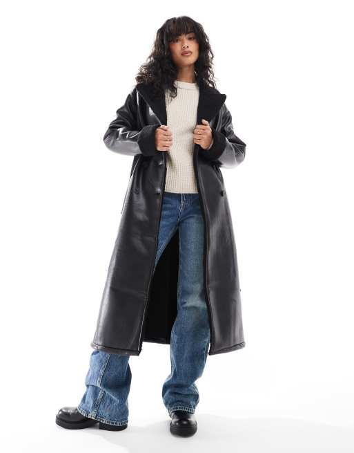 Threadbare – Czarny płaszcz aviator o wydłużonym fasonie z wykończeniami z kożuszka
