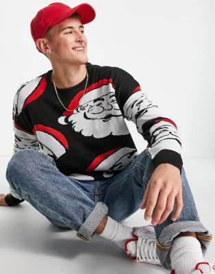 Threadbare – Czarny, świąteczny sweter oversize z motywem św. Mikołaja