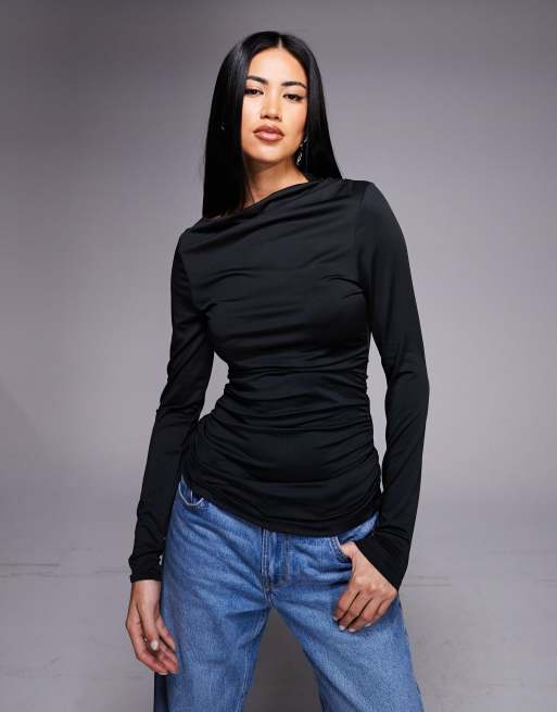 Threadbare – Dopasowany czarny top z długimi rękawami i prostym dekoltem