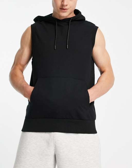 Threadbare Fitness – Czarna bluza z kapturem bez rękawów