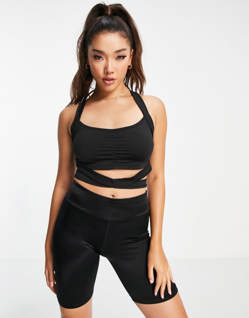 Threadbare Fitness – Czarny zestaw: legginsy sportowe i krótki top
